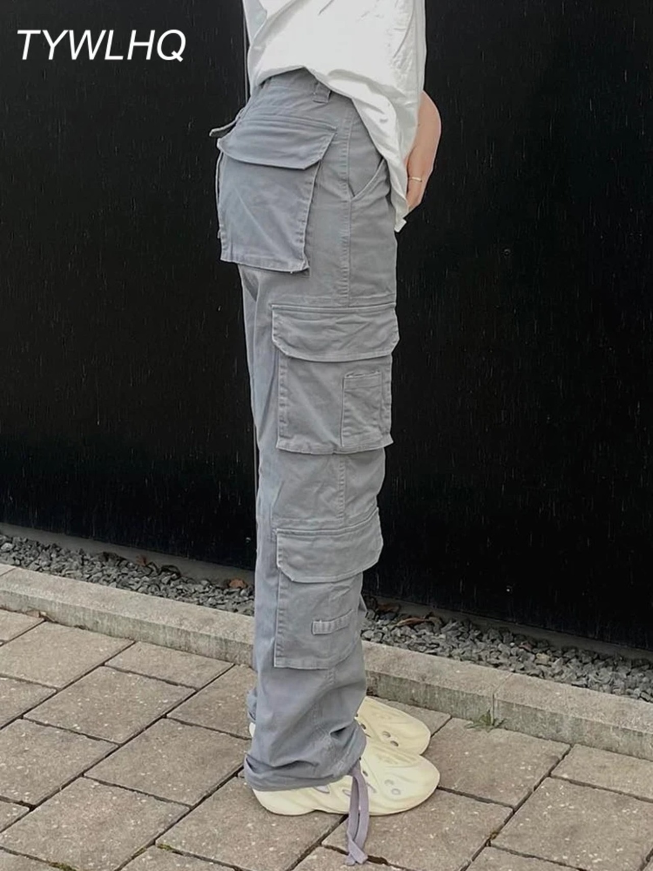 レディースヴィンテージカーゴパンツ、バギージーンズ、90sストリートウェア、ポケット、ワイドレッグ、ハイウエスト、ストレート2kデニム、オーバーオール、ファッション ボトム ワイドレッグ バギーパンツ T240831224025_02 | DOKO-ME