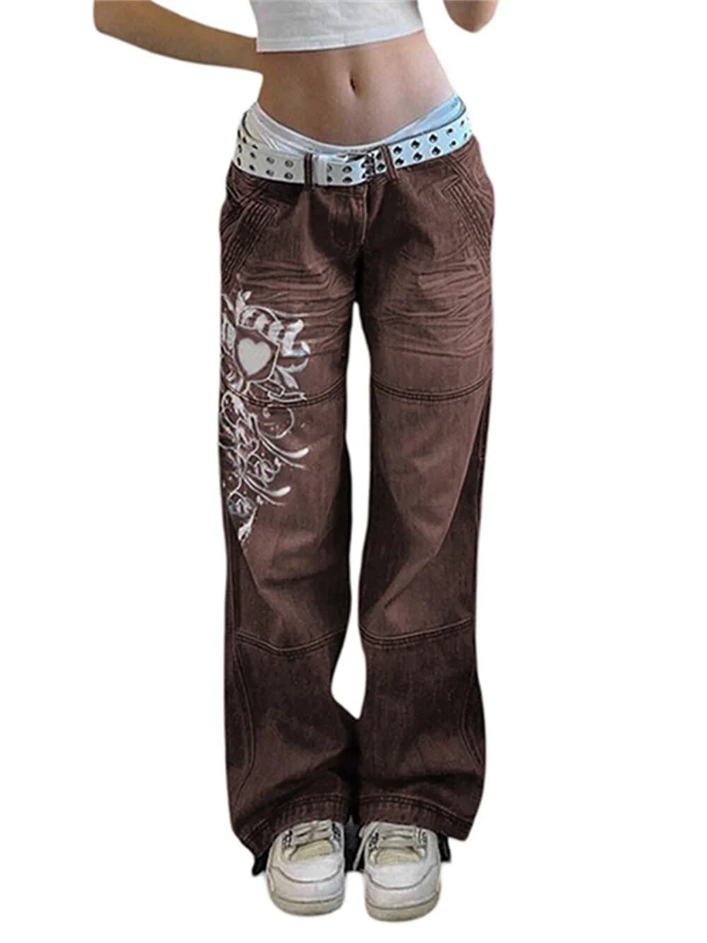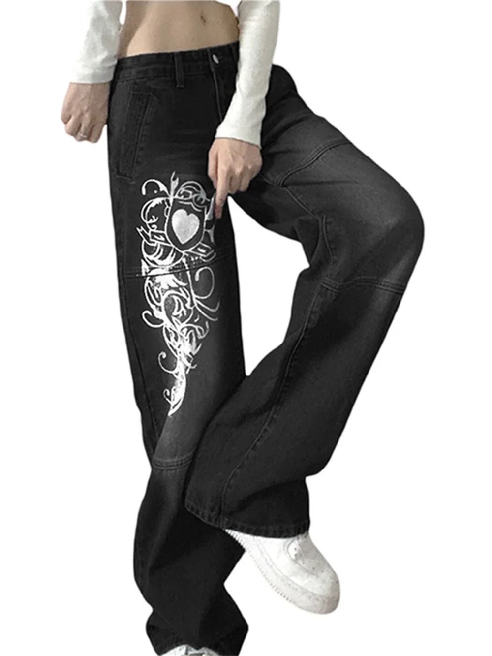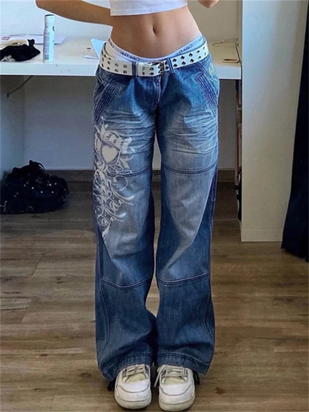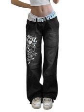 女性用ハイウエストデニムパンツ,バギーパンツ,ヴィンテージゴシックパンツ,ワイドレッグ,ストリートウェア,ルーズフィット ボトム ワイドレッグ バギーパンツ T240831224038_01 | DOKO-ME