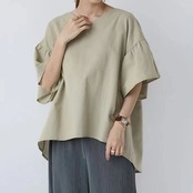 人気 夏 tシャツ 4色 綿麻 シンプル おしゃれ カジュアル 半袖 ゆったりTシャツ ショット丈 トップス 着痩せ アウター レディースファッション ロンt Tシャツカットソ オフィス スポー | DOKO-ME