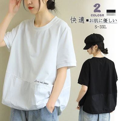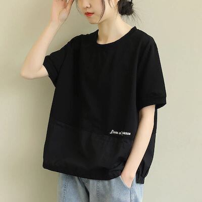 人気 夏 tシャツ シンプル インナー トップス ニット 半袖 レディース 大きいサイズ ロングTシャツカットソー ロンt Tシャツカットソー オフィス スポーツ