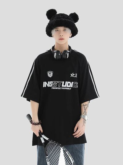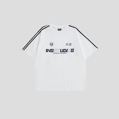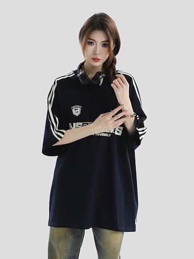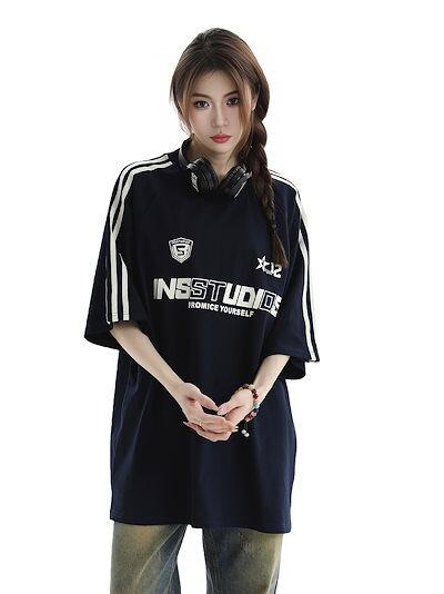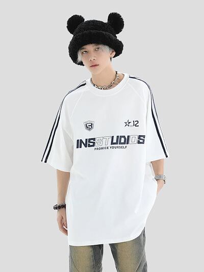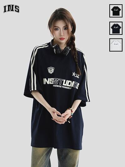2024夏韓国可愛い風トップス Tシャツ ロング丈 ファッション 半袖スリムフィット サイド ペイントシルエット ゆったり 休日レディースサイズ韓国系ネック_おしゃれ カジュアル メンズライク T | DOKO-ME