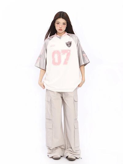 2024夏韓国可愛い風トップス Tシャツ ロング丈 ファッション 半袖 スリムフィット サイド ペイントシルエット ゆったり 休日レディースサイズ韓国ネック おしゃれ カジュアル メンズライク T | DOKO-ME