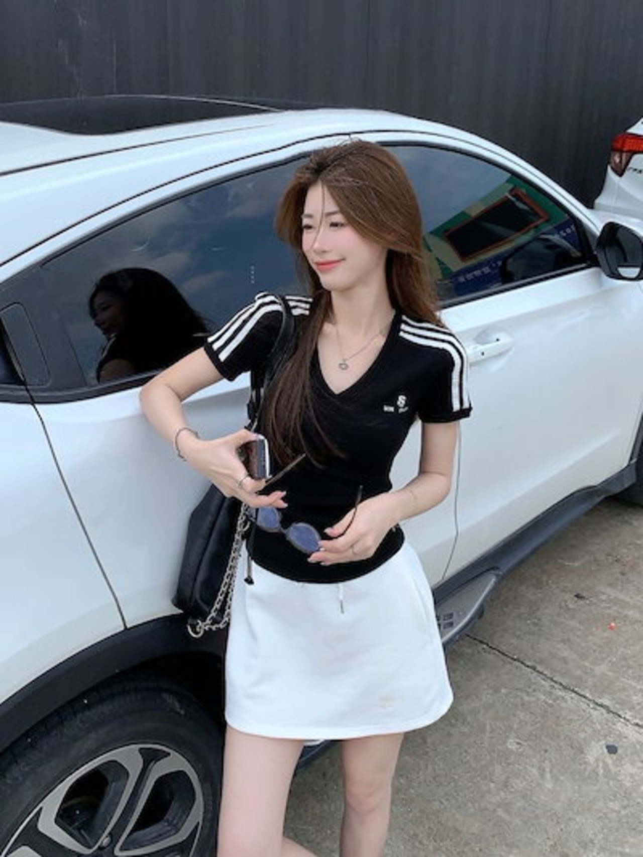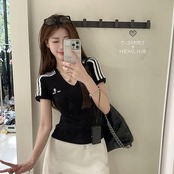 2024 夏 韓国トップス プリント半袖 Tシャツ 韓国 ラウンドネック スリム可愛い風へそ出し ショート おしゃれスリーブ カジュアルサイドコーデ丈 ファッション系レディースフレンチお出かけ T | DOKO-ME
