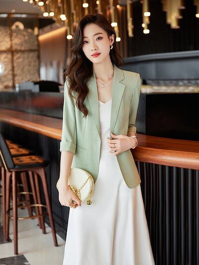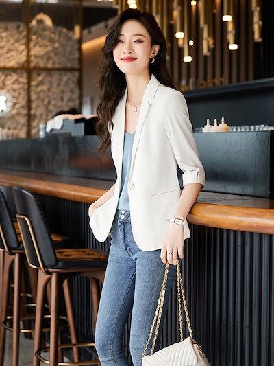 2025 夏服 スーツアウター UVカット 薄 スーツ 小さなスーツジャケット 気質カジュアルミッドスリーブスーツトップ薄いジャケット半袖 紫外線対策 レディース 通勤OL tシャツ トップス | DOKO-ME