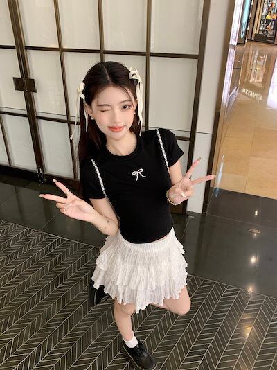 2024 春夏トップス Tシャツ 半袖 ラウンドネック スリム 丈短め ショート イラスト かわいい夏 おしゃれスリーブ カジュアル ファッションレディース 韓国 お出かけT