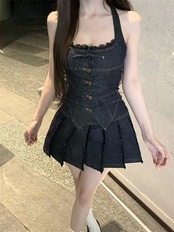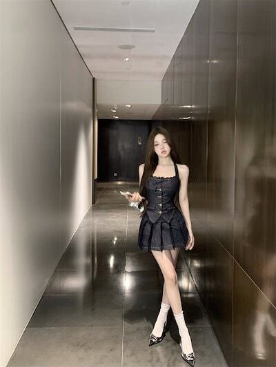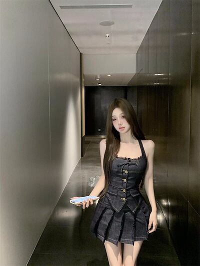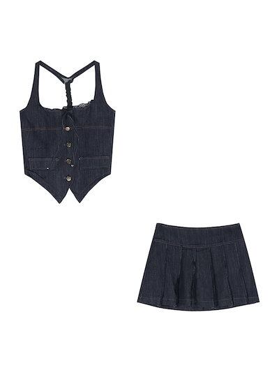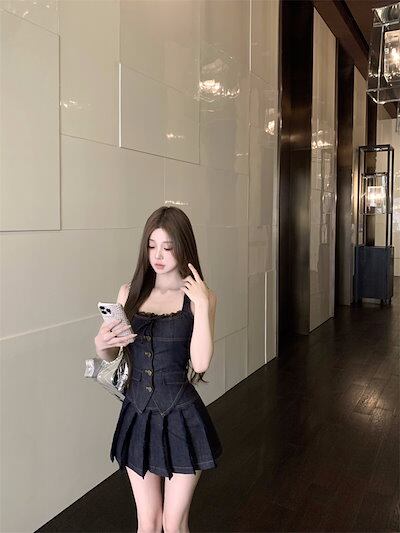 2024 夏ショート丈 キャミソールブラウス ミニスカート 2点セットスクエアネック 韓国半袖 レースアップ ボトムス トップス 大人可愛いファッションレディースフェミニンカジュアル上下ハイウエスト | DOKO-ME