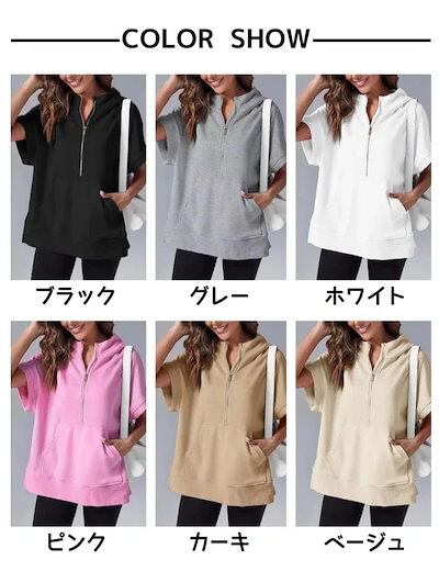 パーカー レディース 大きいサイズ トップス 半袖 カットソー プルオーバー フード付き おしゃれ カジュアル 夏新作