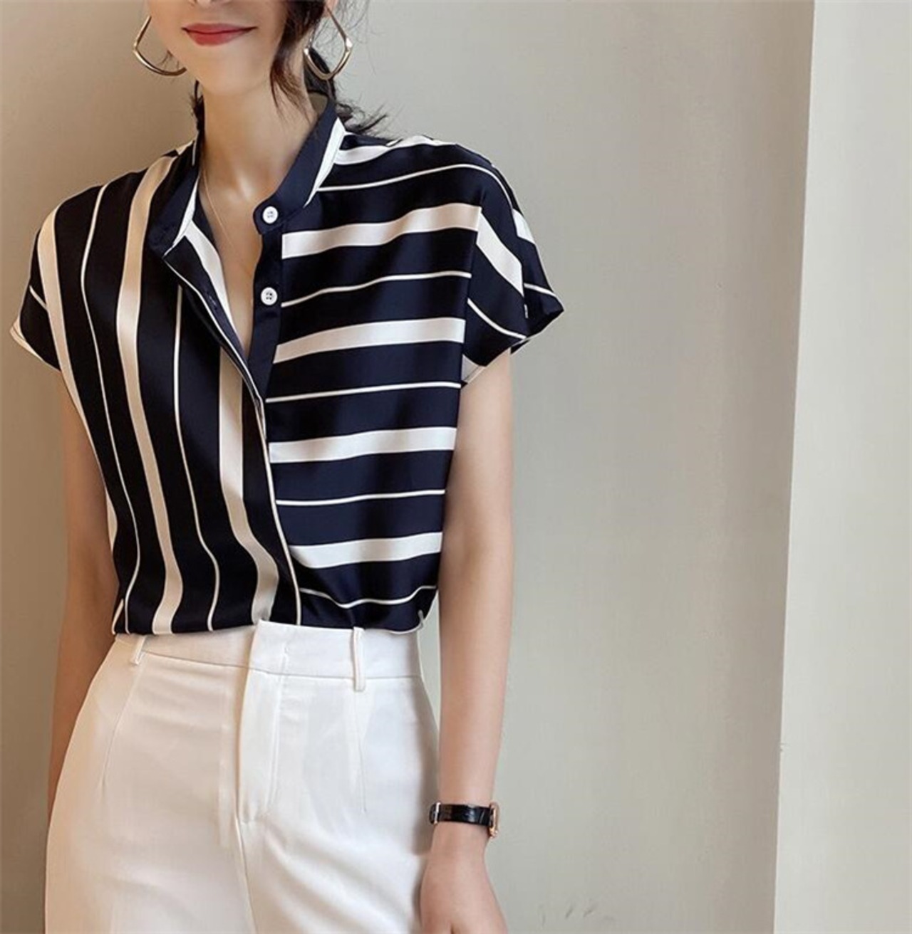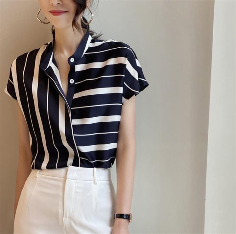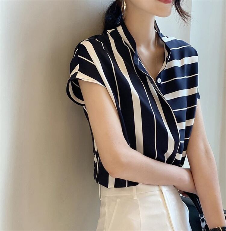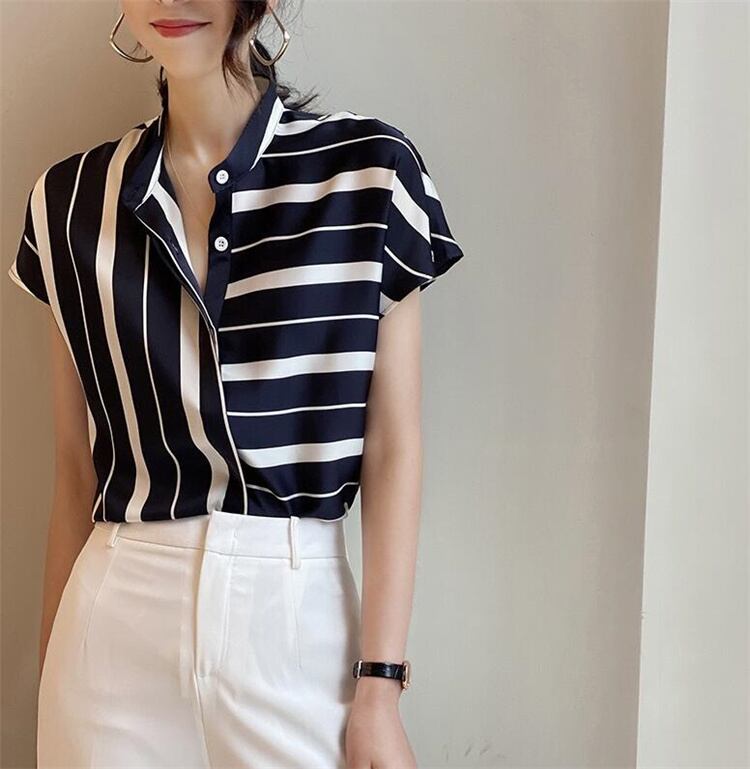 ワンランク上のコーデになる 通勤する 半袖 シャツ 2022年夏 新作 気質 スタンドカラー 着痩せ トップス