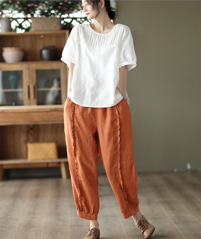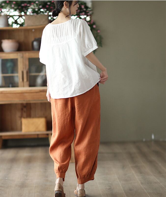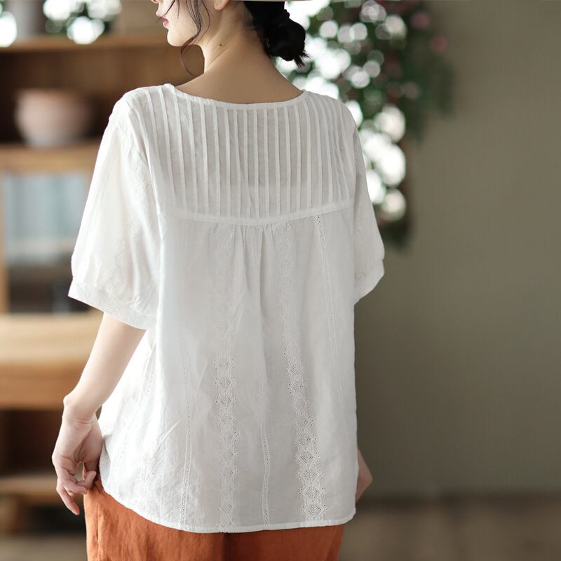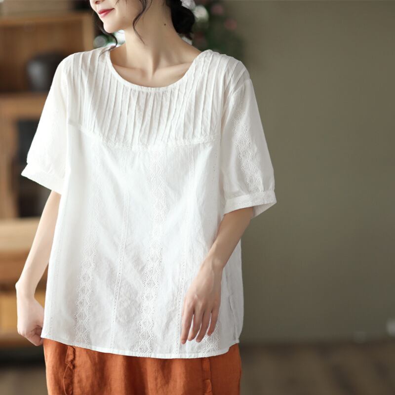 【2022新作】春夏刺繍トップス半袖Tシャツカジュアル綿麻