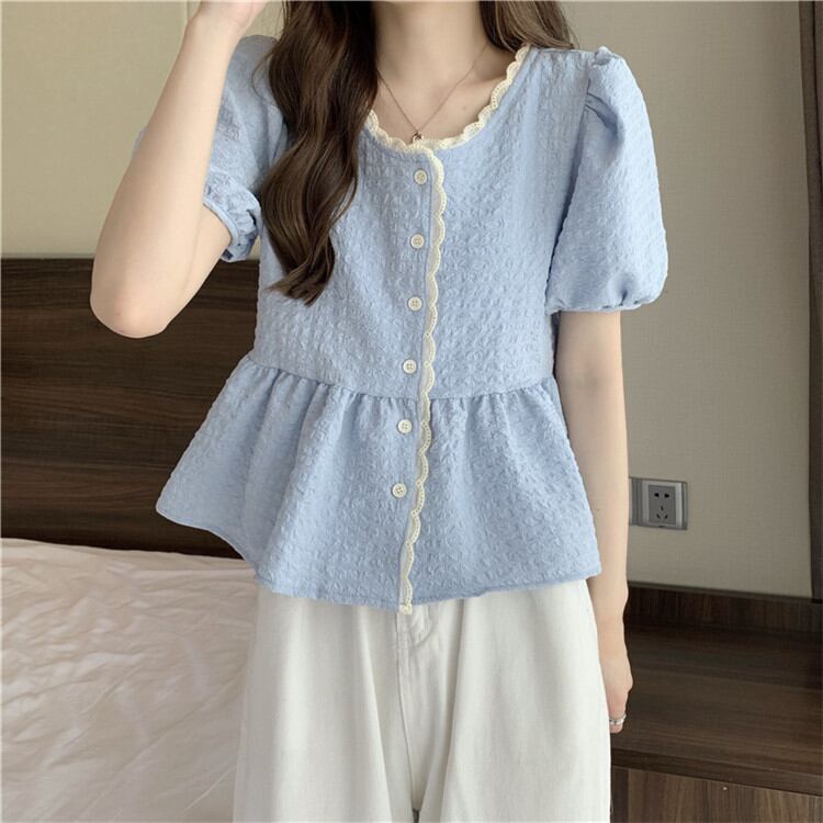 レース 人形の襟 シャツ 夏の新作 可愛い パフスリーブ 半袖 トップス sweet系