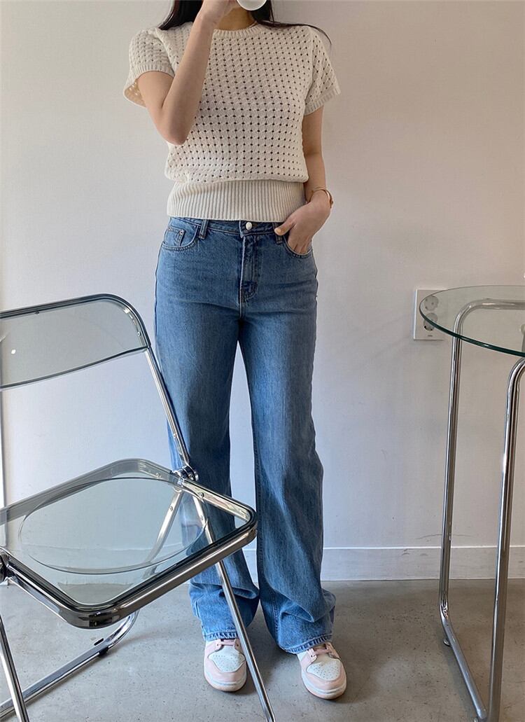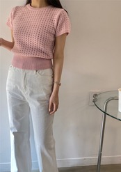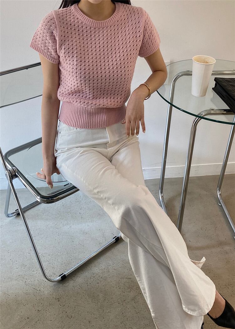 大人旬Style ミニマリスト 麻の花 透かし彫り セーター 春 半袖 ゆったりする トップス