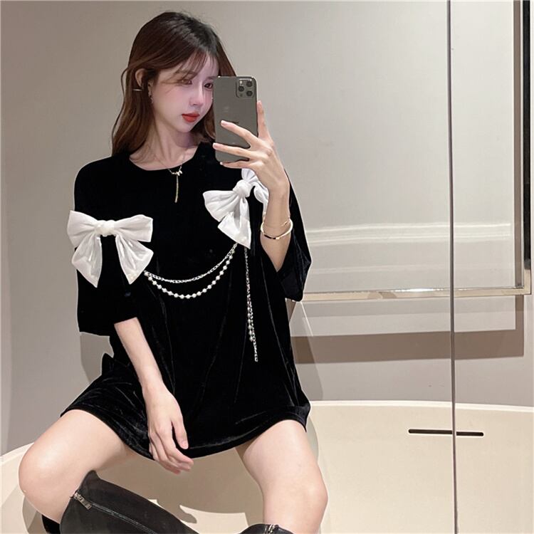 触り心地がいいです 蝶結び ハイエンド トップス トレンド 半袖 デザインセンス Tシャツ