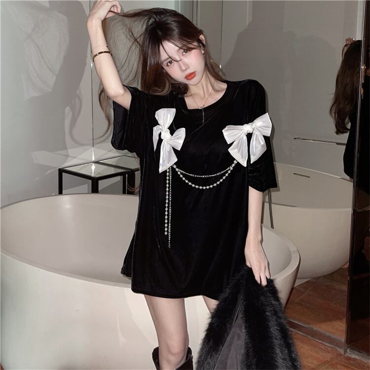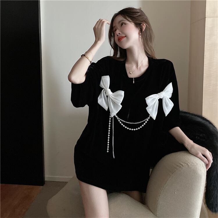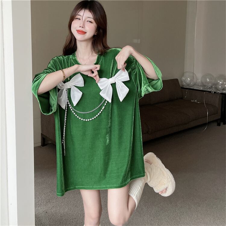 触り心地がいいです 早い者勝ち 蝶結び ハイエンド トップス トレンド 半袖 デザインセンス Tシャツ