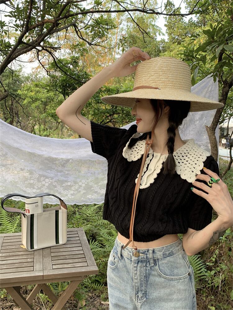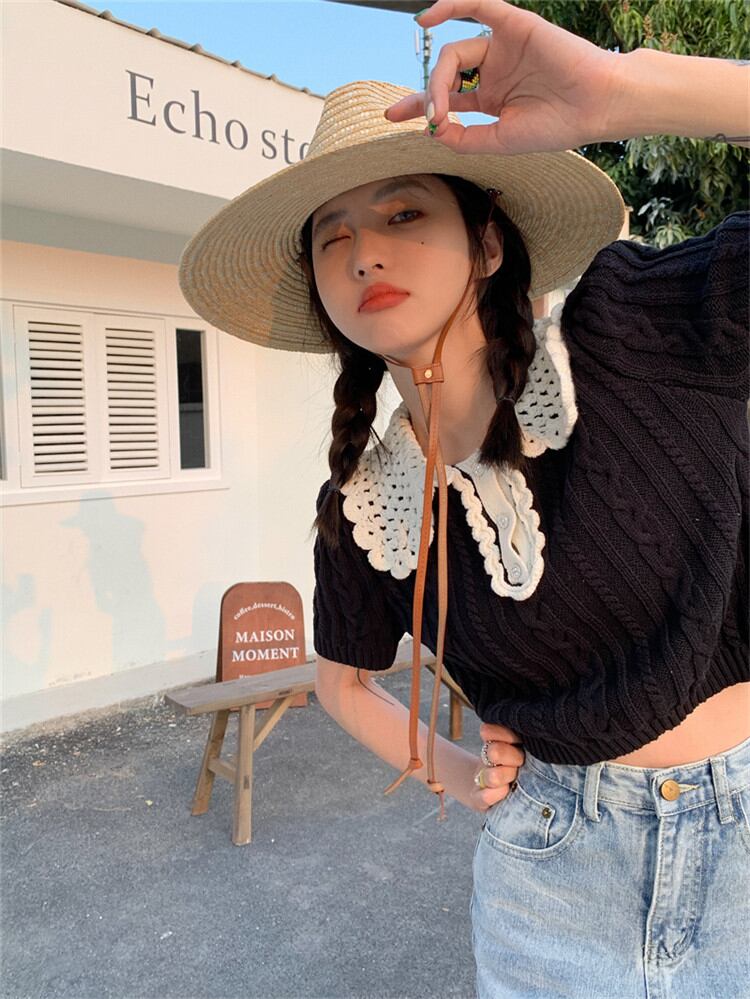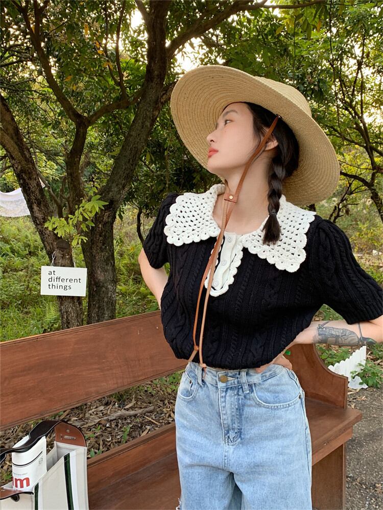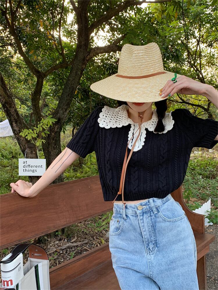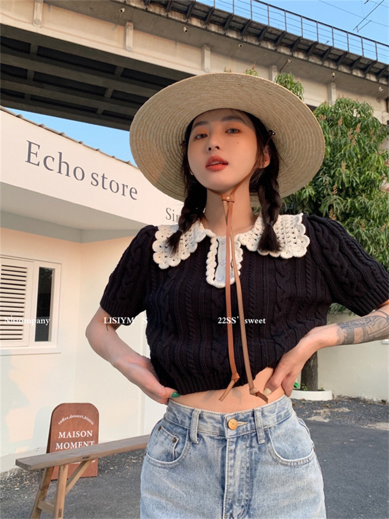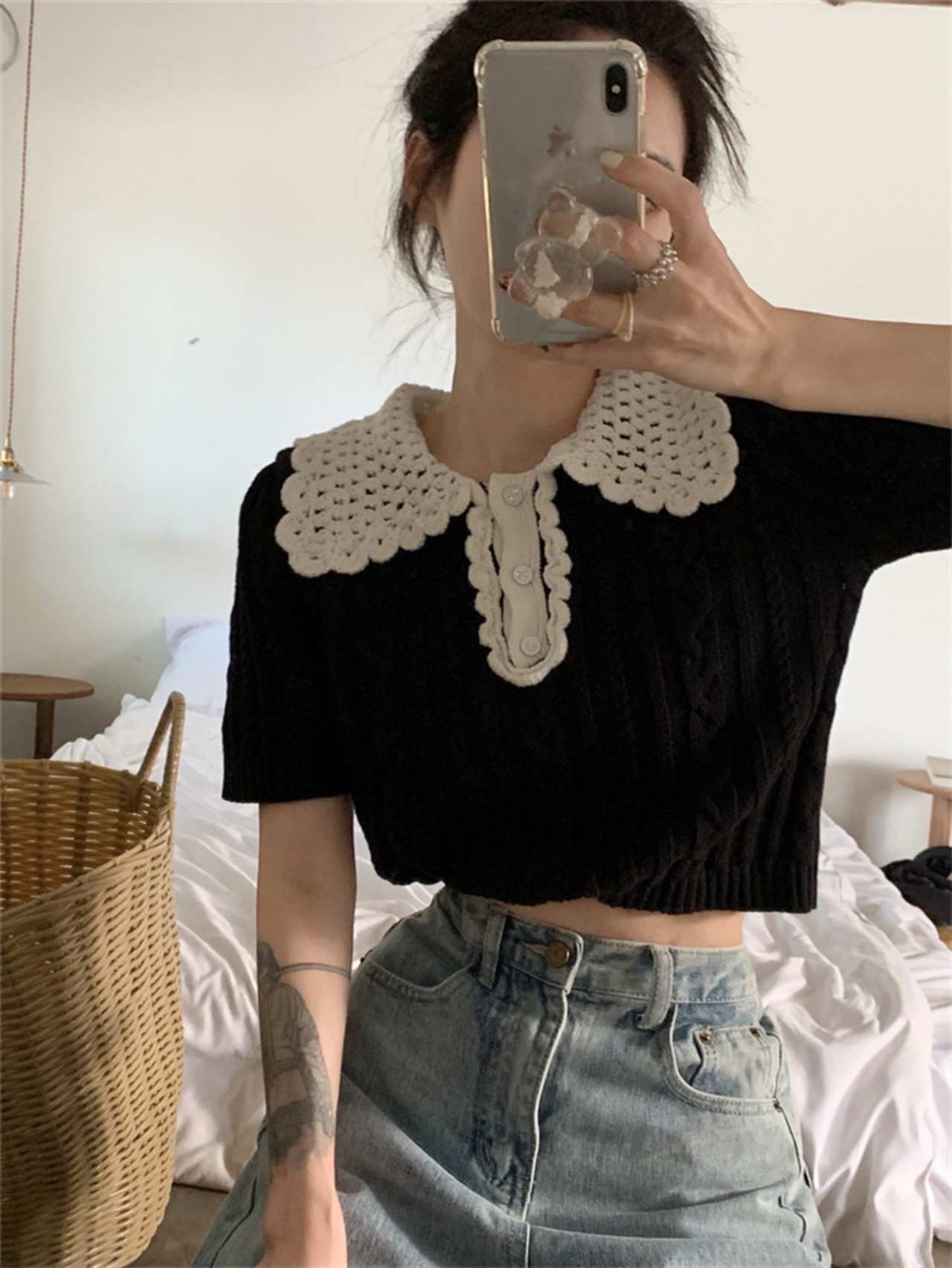 1枚で着映えが狙える INSスタイル 手作り ラペル 半袖 編み物 トップス デザインセンス