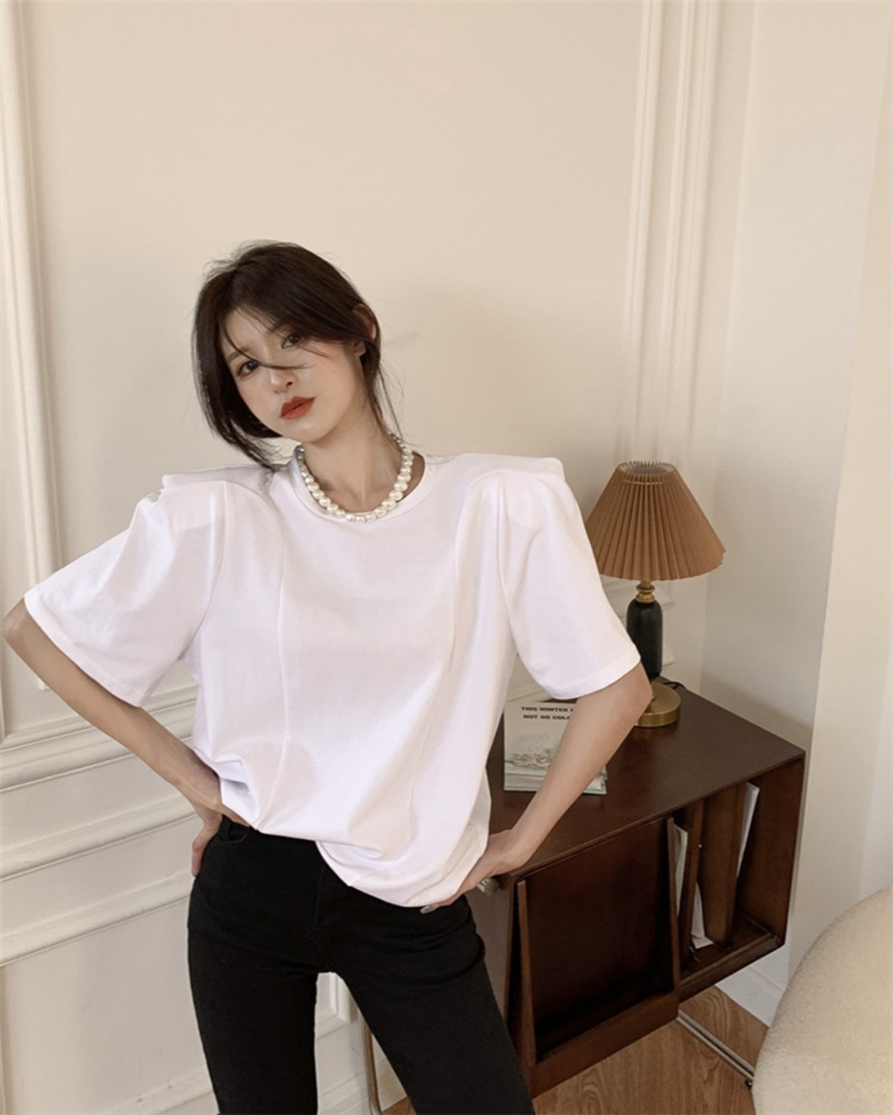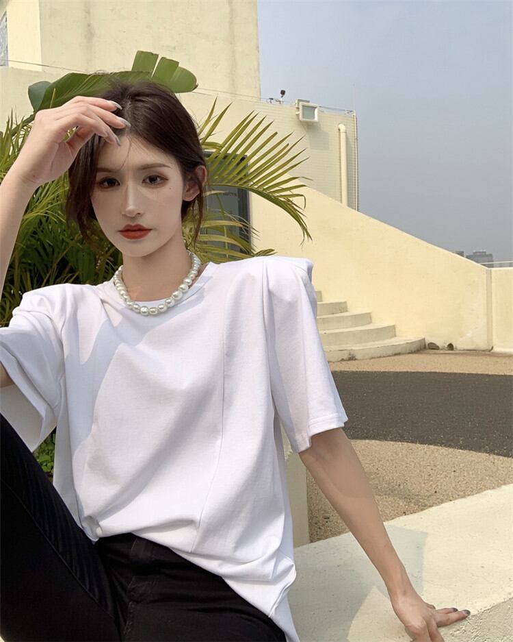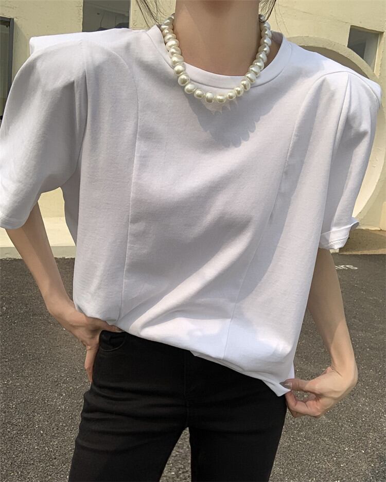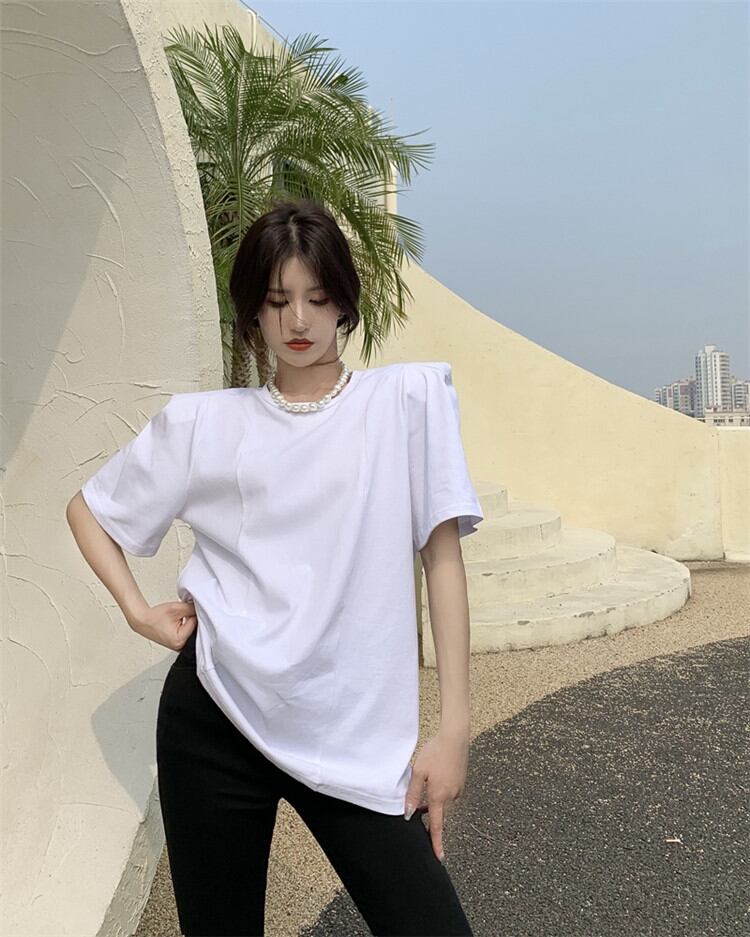 大人気 立体 オシャレ ゆったりする 半袖 ショルダーパッド Tシャツ 春夏 新作 トップス トレンド