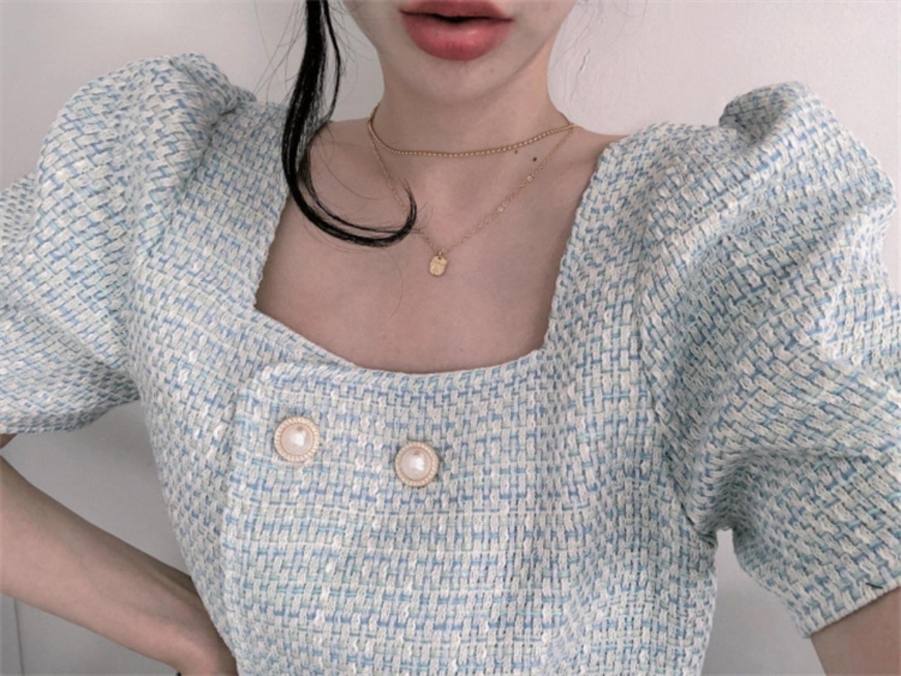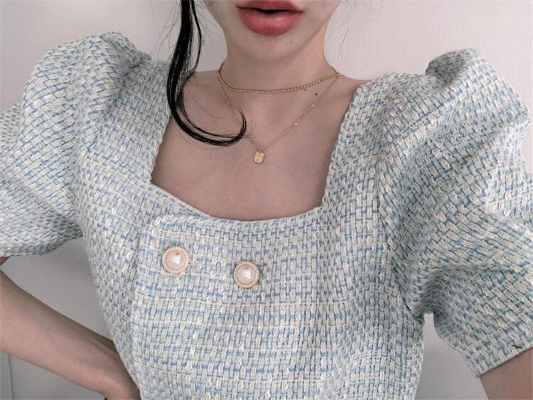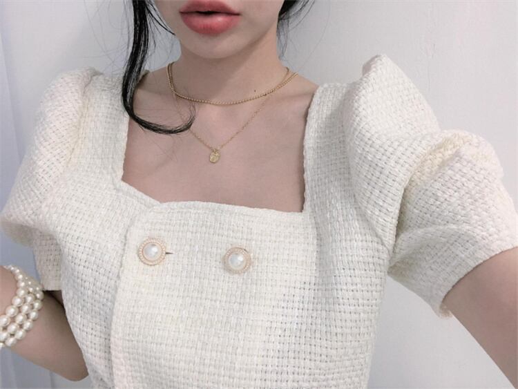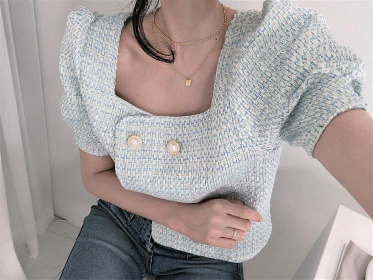 告白を受けます パフスリーブ シャツ スクエアネック 半袖 トップス コート
