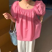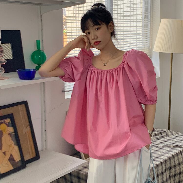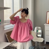 コーデに輝きを添える 早い者勝ち 綿 sweet系 スリム トップス パフスリーブ レース 半袖 シャツ 気質