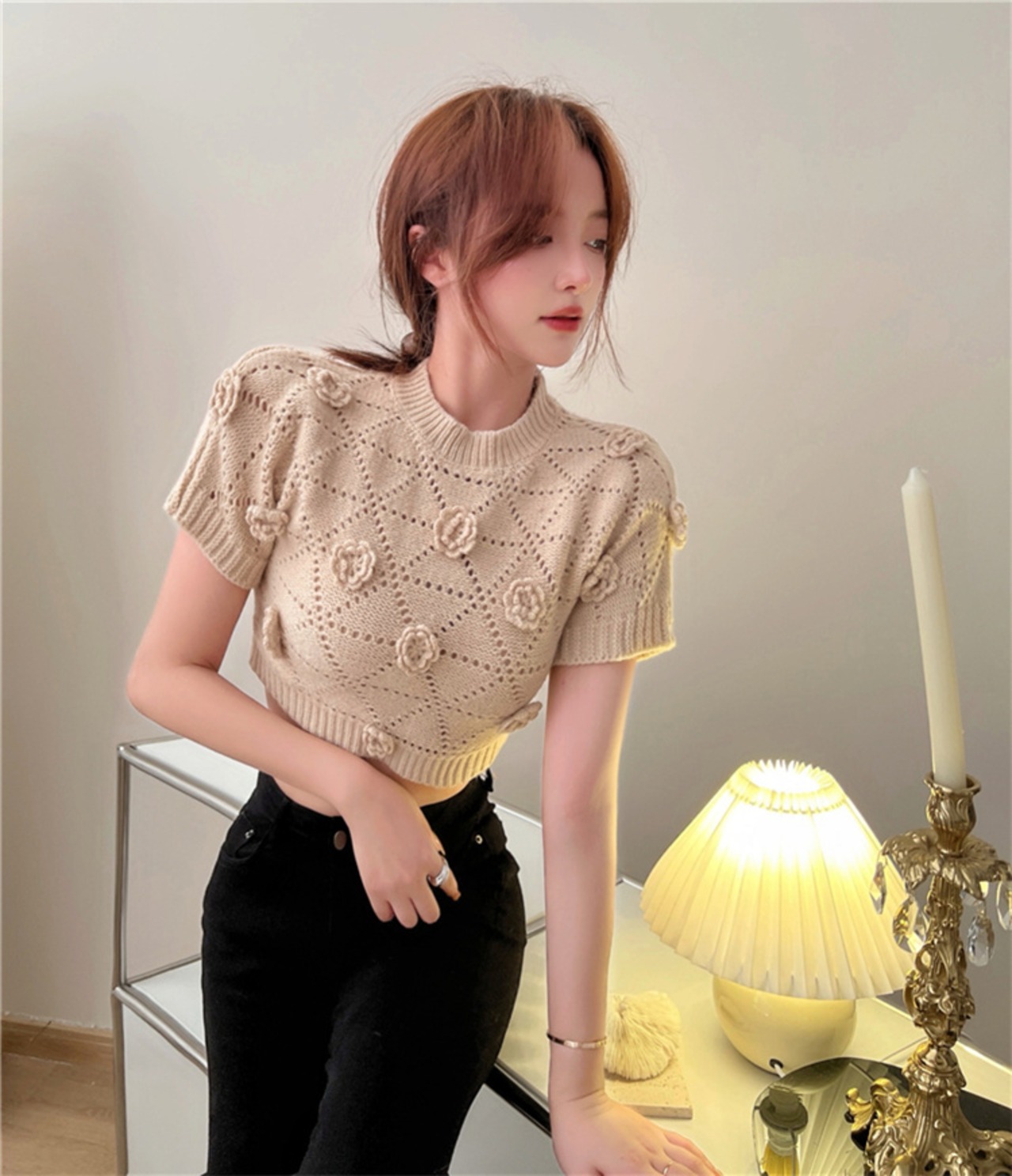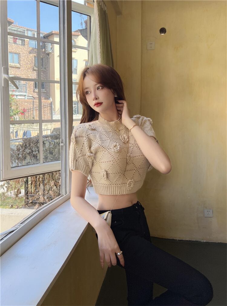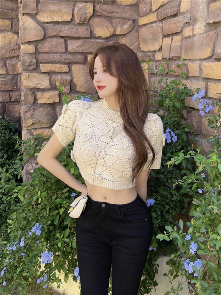 これが大好きです 立体 セーター スリム トップス くぼみ sweet系 タイト 半袖