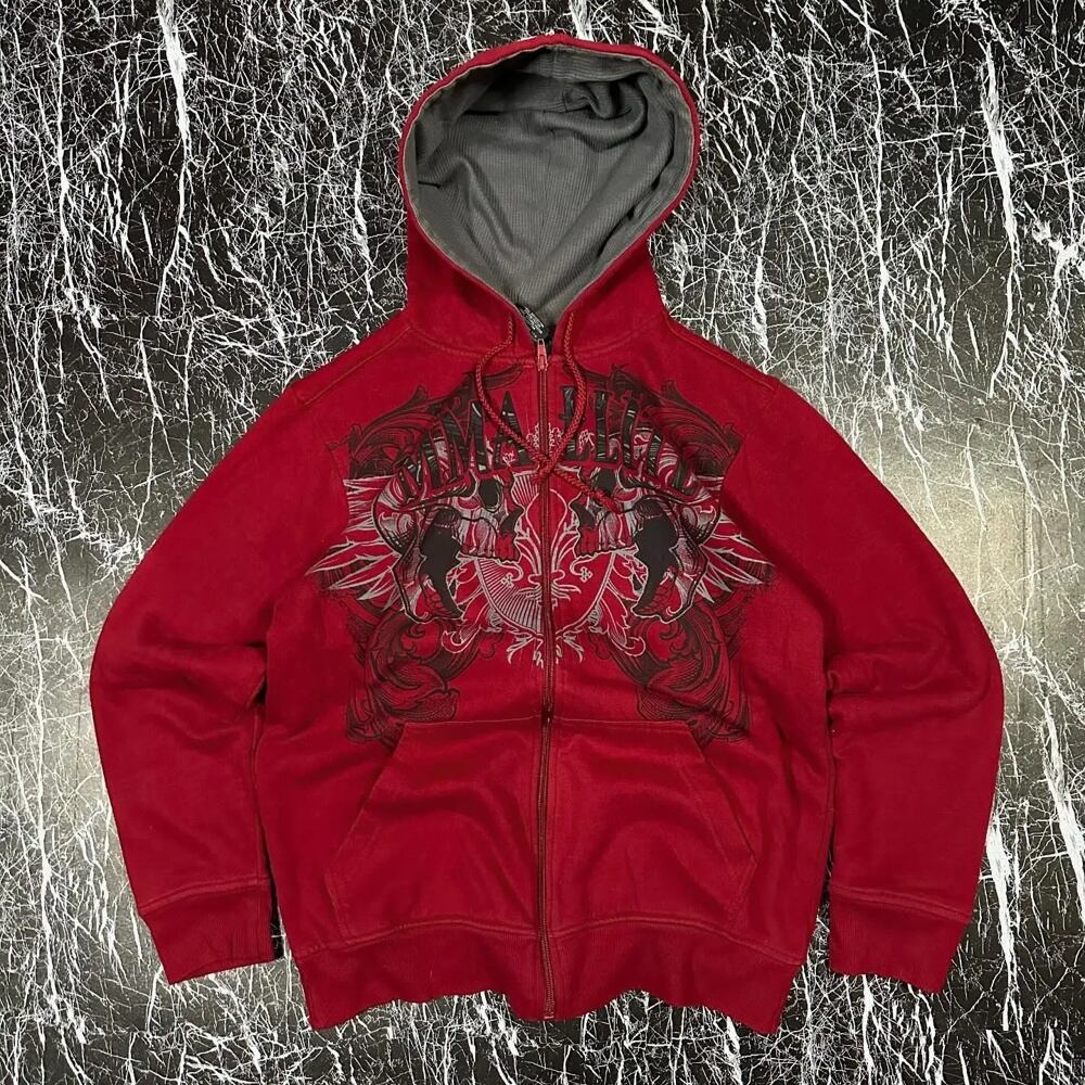 女性のアメリカのヒップホップゴスプリントジッパーパーカー、ルーズオーバーサイズのスウェットシャツ、カジュアルパーカー、y2kストリートジョーカー、ユニセックス、新しい パーカー ジャージ y2k T240908165414_02 | DOKO-ME