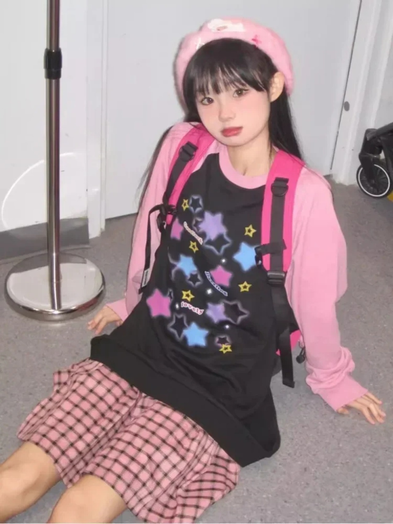 Adagirl-女性のための特大の星のグラフィックパーカー、美的lanスリーブのスウェットシャツ、原宿トップス、カワイイ服、y2k、e-girl、カワイイ パーカー ジャージ y2k T240908165736_02 | DOKO-ME