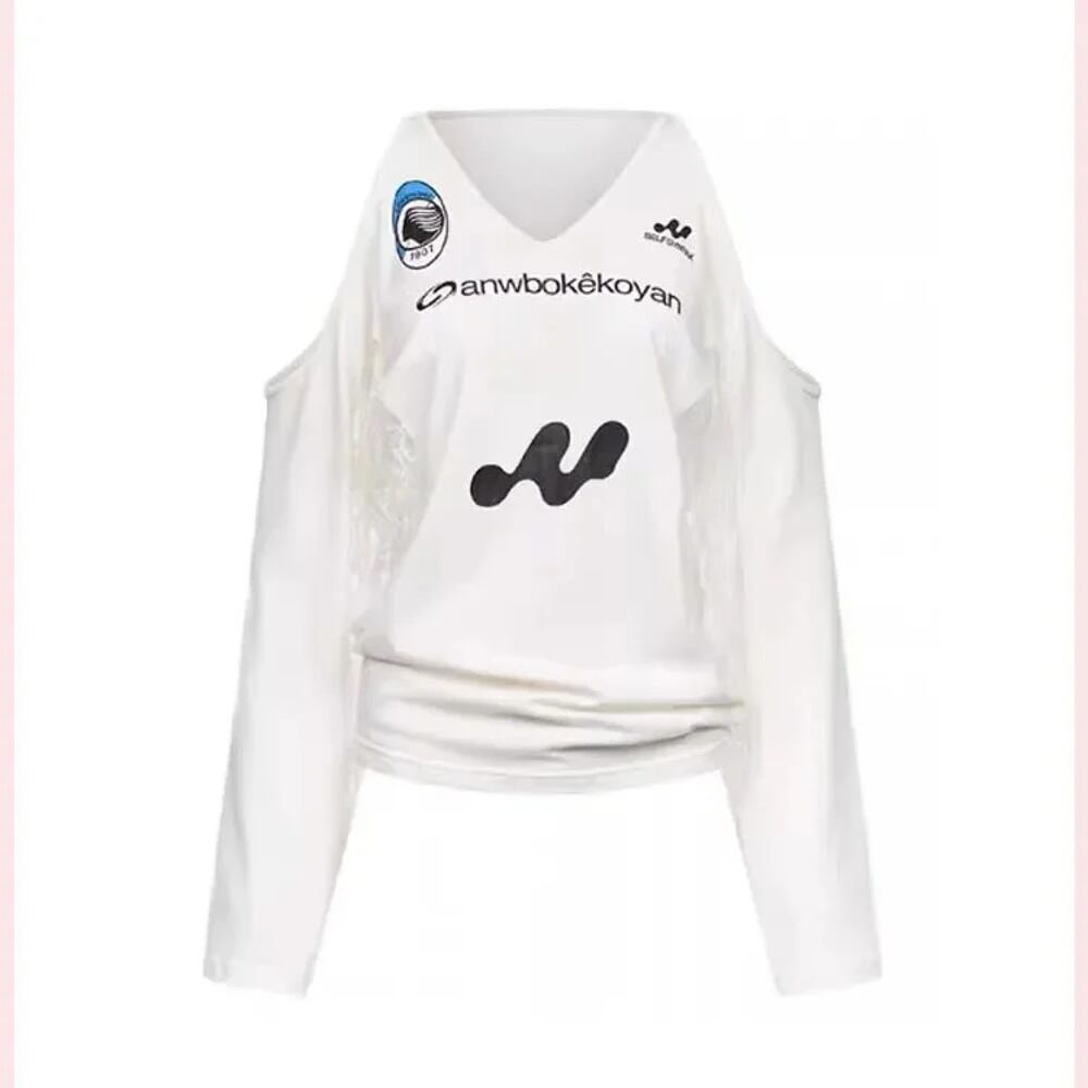 Deeptown-女性の特大レタープリントスウェットシャツ、ヴィンテージストリートウェア、セクシーなレース、裸の肩、スポーツトップ、kpopジャージー、秋、y2k パーカー ジャージ y2k T240908165859_03 | DOKO-ME