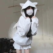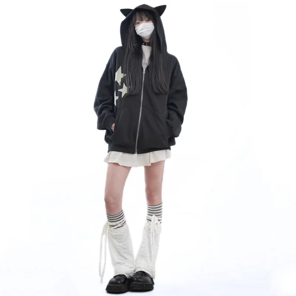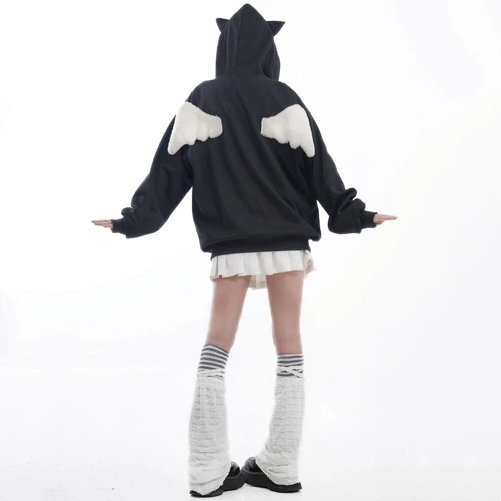 女性のカワイイキャットイヤーフード付きスウェットシャツ、ぬいぐるみエンジェルウィングジップアップフーディー、ハロウィーンパーティー服、若い女の子、y2k、秋 パーカー ジャージ y2k T240908165905_02 | DOKO-ME