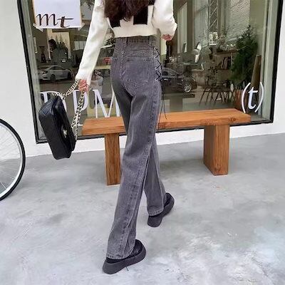 【3日以内に出荷】ワイドパンツジーンズ レディース新しいスタイルストラップストレートレッグ・パンツ
