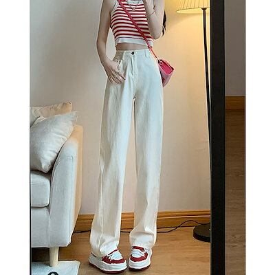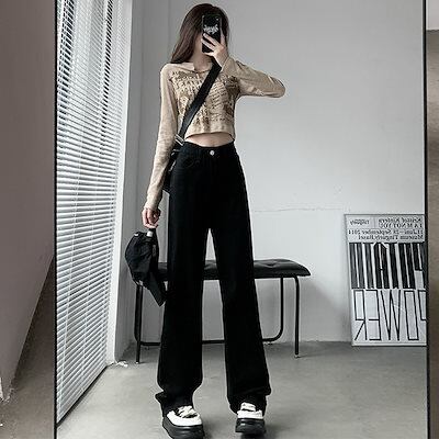 デニムパンツ ヴィンテージ ハイウエスト ワイドパンツ ジーンズ レディース スモール ルーズフィット ストレート ドレープ モップズボン 韓国