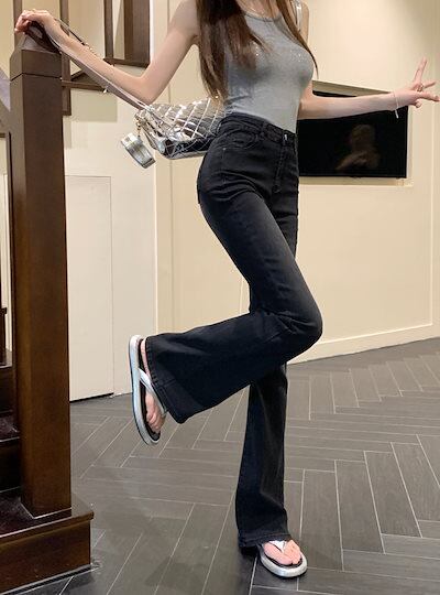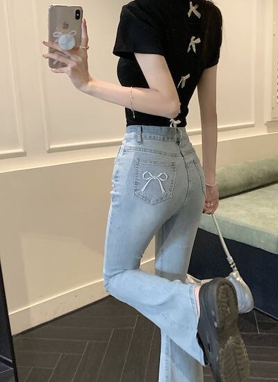 2024秋 パンツ デニム ジーンズ ロング丈 ハイウエスト 美脚効果 脚長効果 細見え ウォッシュ加工 冬 春 おしゃれ かわいい 韓国ファッション系 お出かけ