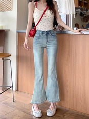 2024春夏パンツ デニム ジーンズ クロップド丈 アンクル丈 ワイドレッグ ハイウエスト 美脚効果 脚長効果 細見え 夏 黒 おしゃれ かわいい 韓国ファッション レディース お出かけ | DOKO-ME