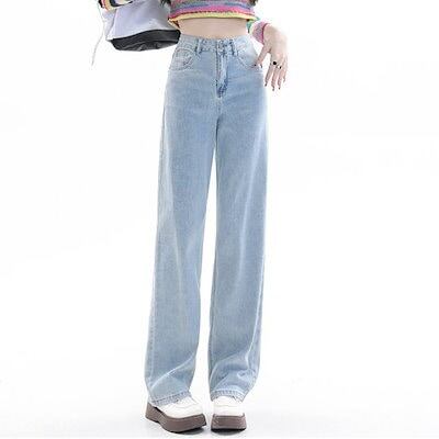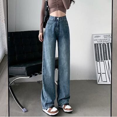 2025 初秋 デニムパンツ パンツ デニム ジーンズ ワイド ストレート ハイウエスト 脚長効果 美脚効果 細見え カジュアル おしゃれ かわいい シンプル レディース お出か 韓国ファッション | DOKO-ME