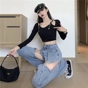 2024 春夏 韓国っぽ 最先端 デニムパンツ ワイドパンツ レディース ズボン ファッション ショートパンツ デザイン カジュアル 韓国系 メンズライク 美脚見え