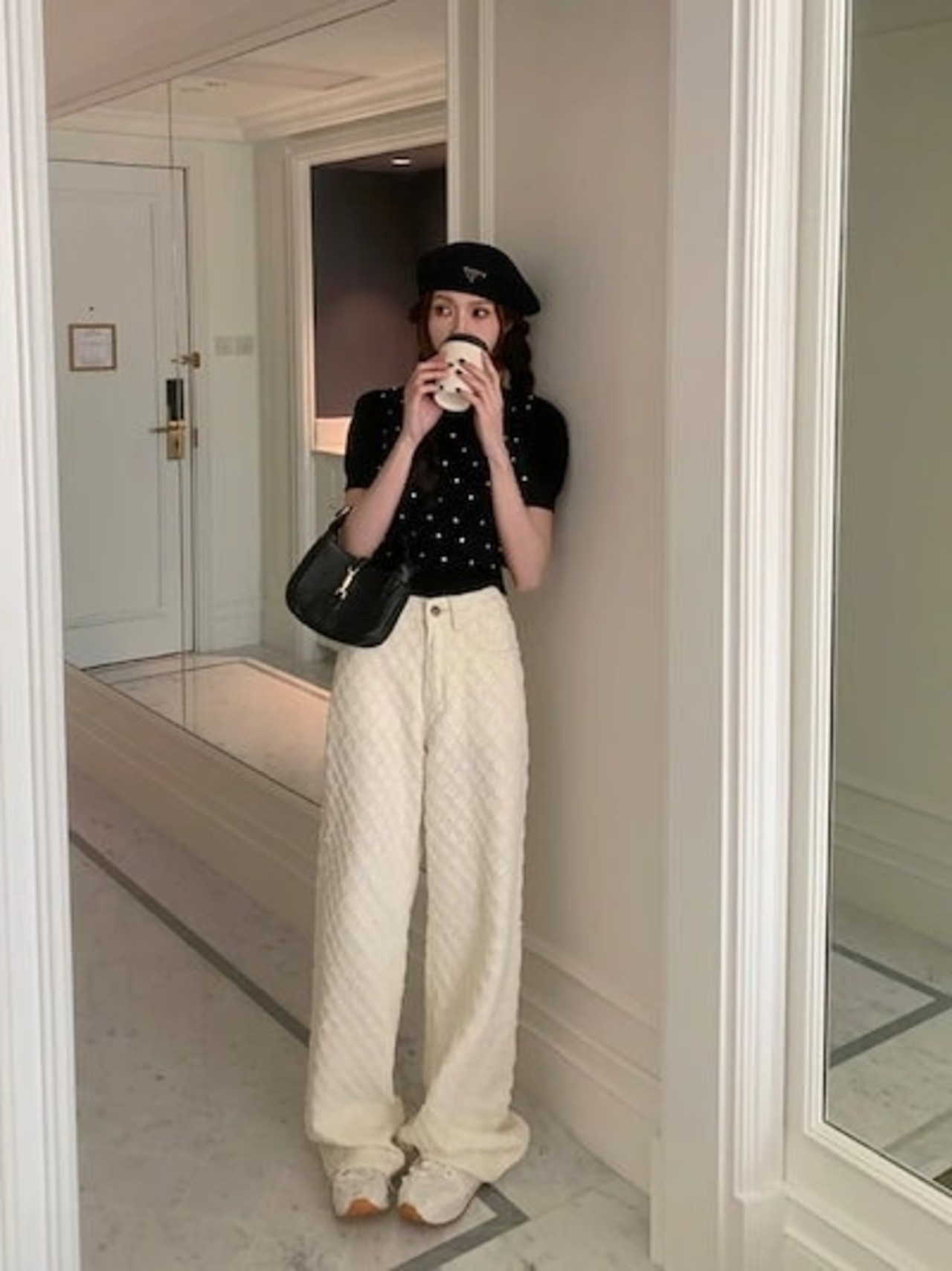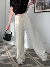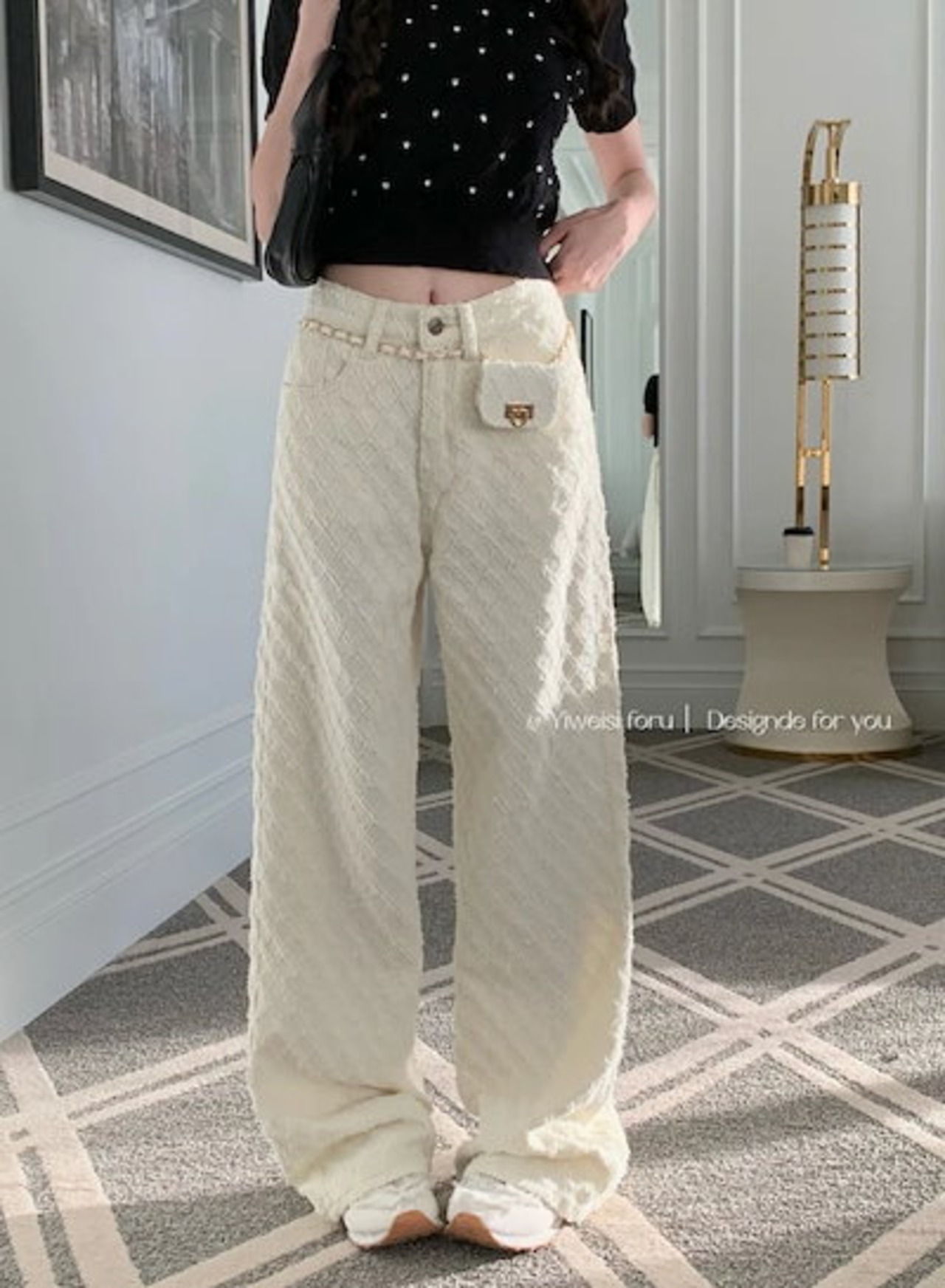 2024 春夏パンツ デニム ジーンズ ワイド ストレート ハイウエスト 脚長効果 美脚効果 細見え 春 白 ホワイト カジュアル おしゃれ かわいい シンプル 韓国ファッション レディース お出かけ | DOKO-ME