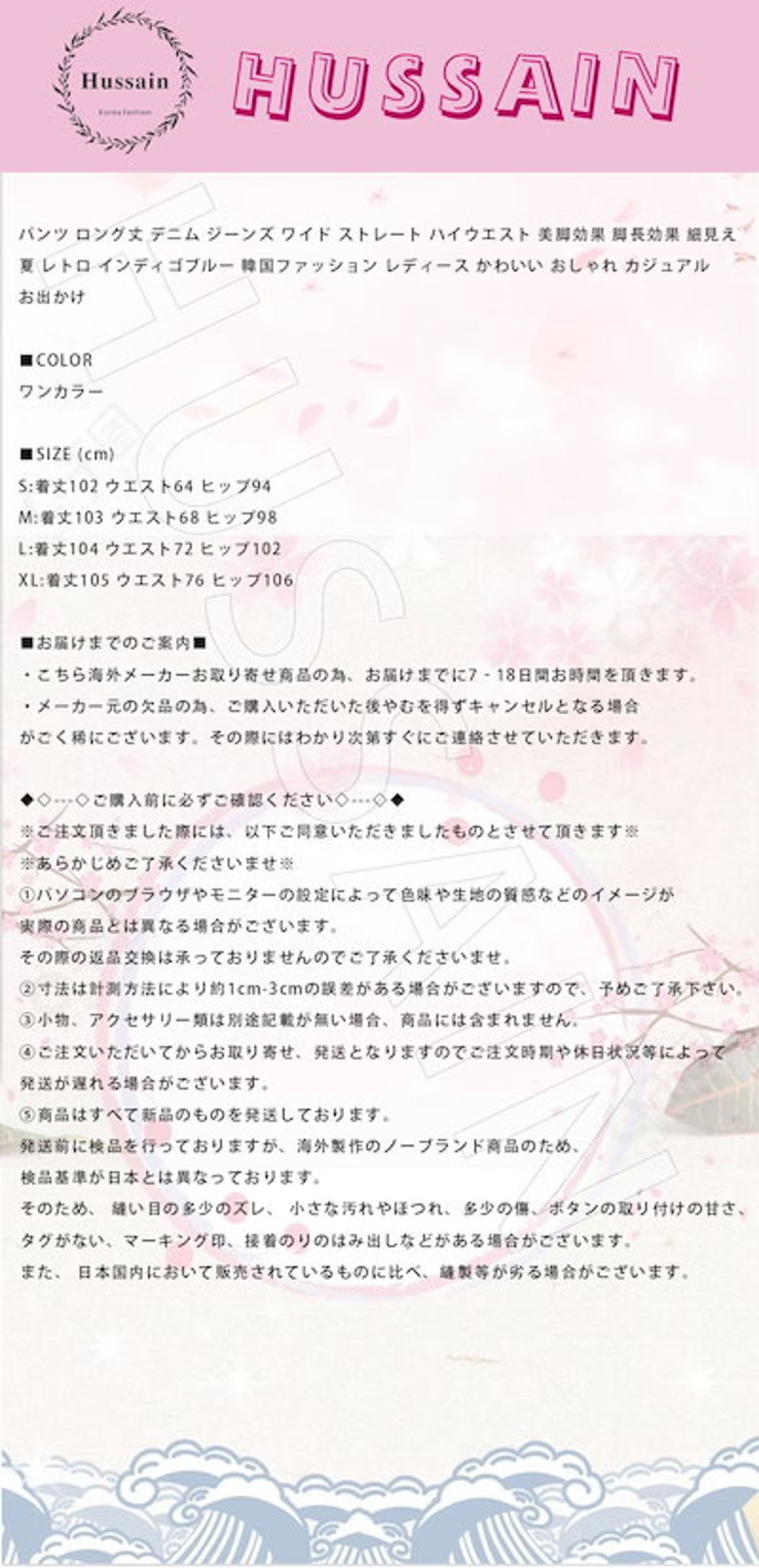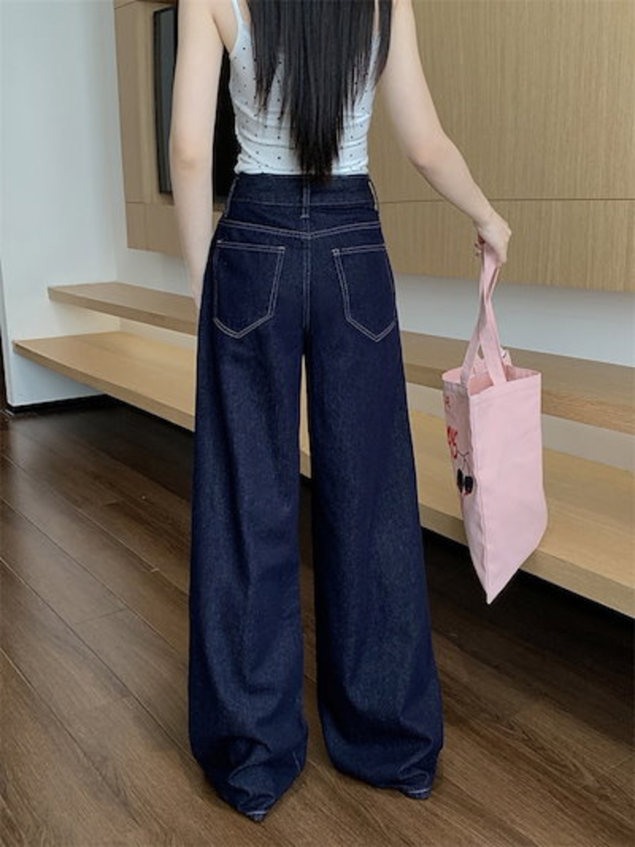 2024春夏パンツ ロング丈 デニム ジーンズ ワイド ストレート ハイウエスト 美脚効果 脚長効果 細見え 夏 レトロ インディゴブルー 韓国ファッション レディース かわいい おしゃれ カジュアル | DOKO-ME