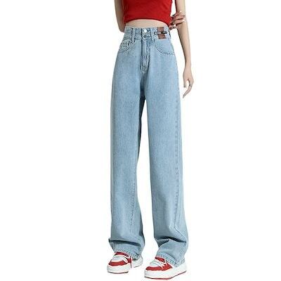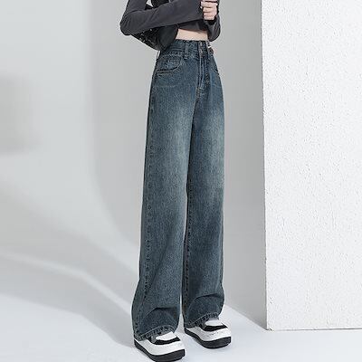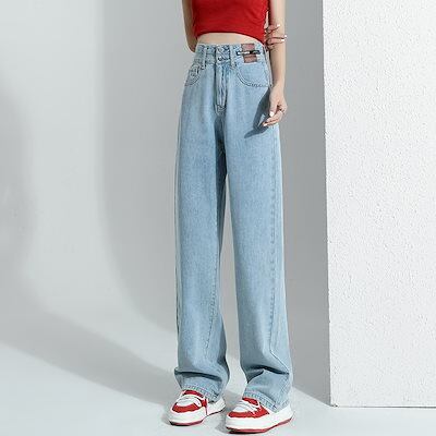 デニムパンツジーンズ レディース 春秋 2024 新作 ハイウエスト 薄手 ドレープ ゆったり ワイド 引きずり ズボン